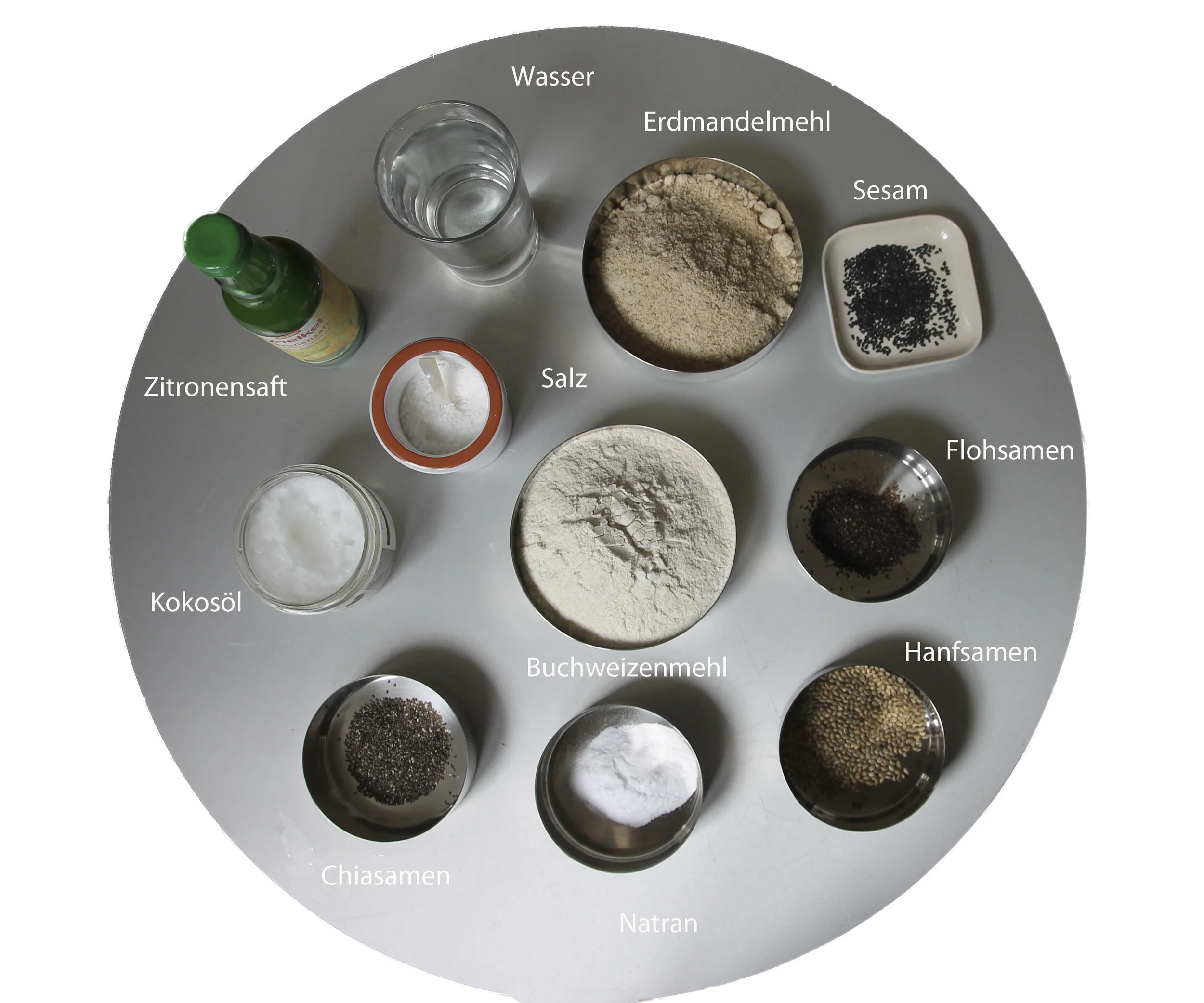 Ich hatte große Freude, die Zutaten zu besorgen, denn es stellte sich heraus, dass es gar nicht so einfach ist alles zu bekommen. Aber das Stöbern hat mir gefallen. Traubenkernmehl konnte ich nicht ergattern, genauso wenig Mandelmehl. Das Traubenkernmehl habe ich einfach weg gelassen und das Mandelmehl durch Erdmandelmehl ersetzt (das habe ich in einem ganz kleinen veganen Laden in Kreuzköln entdeckt). Was man leider sagen muss: das eigene basische Brot ist kein Schnäppchen, die Zutaten sind wirklich teuer, aber bei der Ernährung wäre ja bekanntlich an der falschen Stelle gespart.